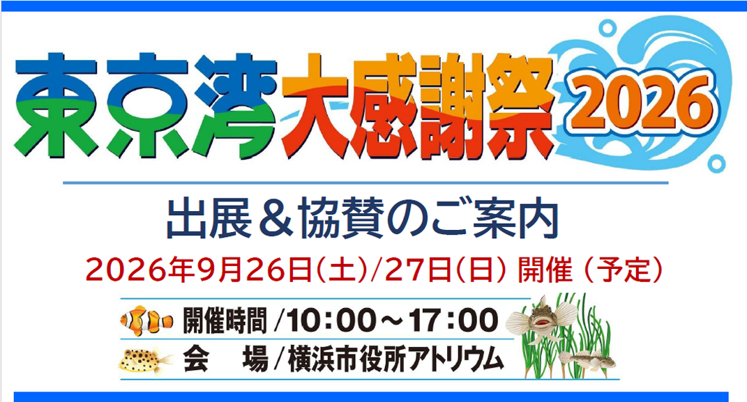次世代を担う子供や青少年層に身近な海、地元の海になる東京湾をきっかけとして、海の環境や生き物、海・港の役割や関連業界に関心を持っていただき、新しい東京湾の姿、想いをみんなで一緒に東京湾の未来づくりに結びつけたいと思います。東京湾に関心のある企業、組織団体が、一堂に介する場、として是非、本祭の出展・協賛、PRにご活用下さい。